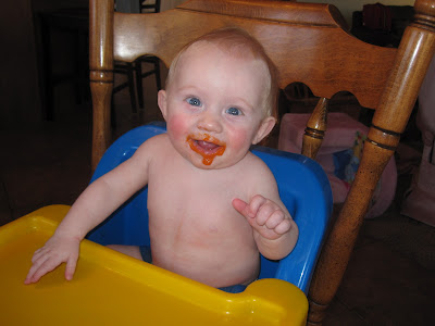 One cute thing about him is that he is already showing signs of liking sports. One day when I was feeding him (which he was way into) Kevin turned on a baseball game and he was glued. He no longer wanted to eat, he was just staring at that game. He also really likes balls, they are his favorite toys to play with, he even said ball today.